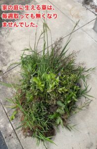 玄関前の庭に生えている草を、